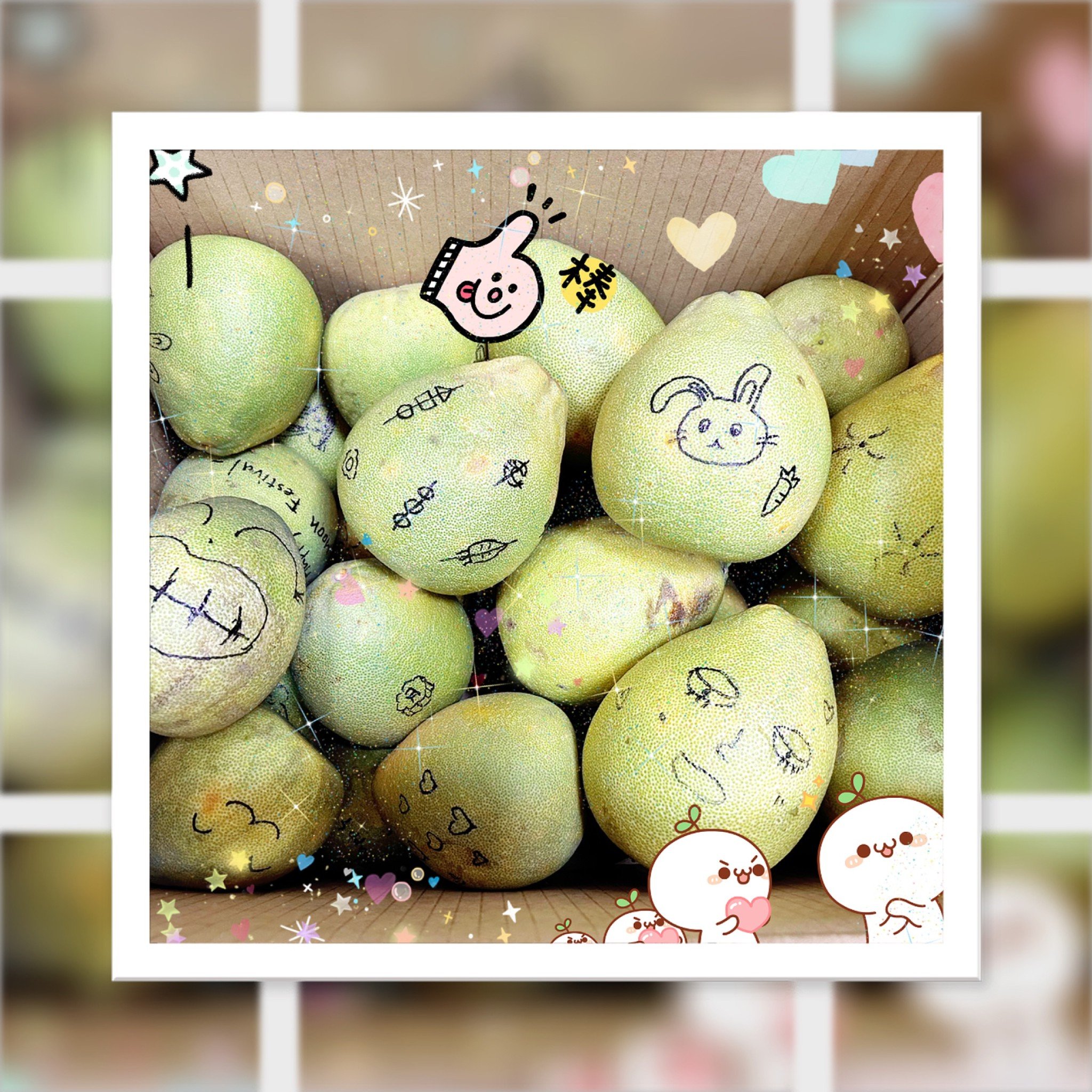陸陸續續也收到客戶和廠商寄來的柚子,我們業務部今年送了一箱別出心裁的柚子給大客戶, 上面都是滿滿的心意,